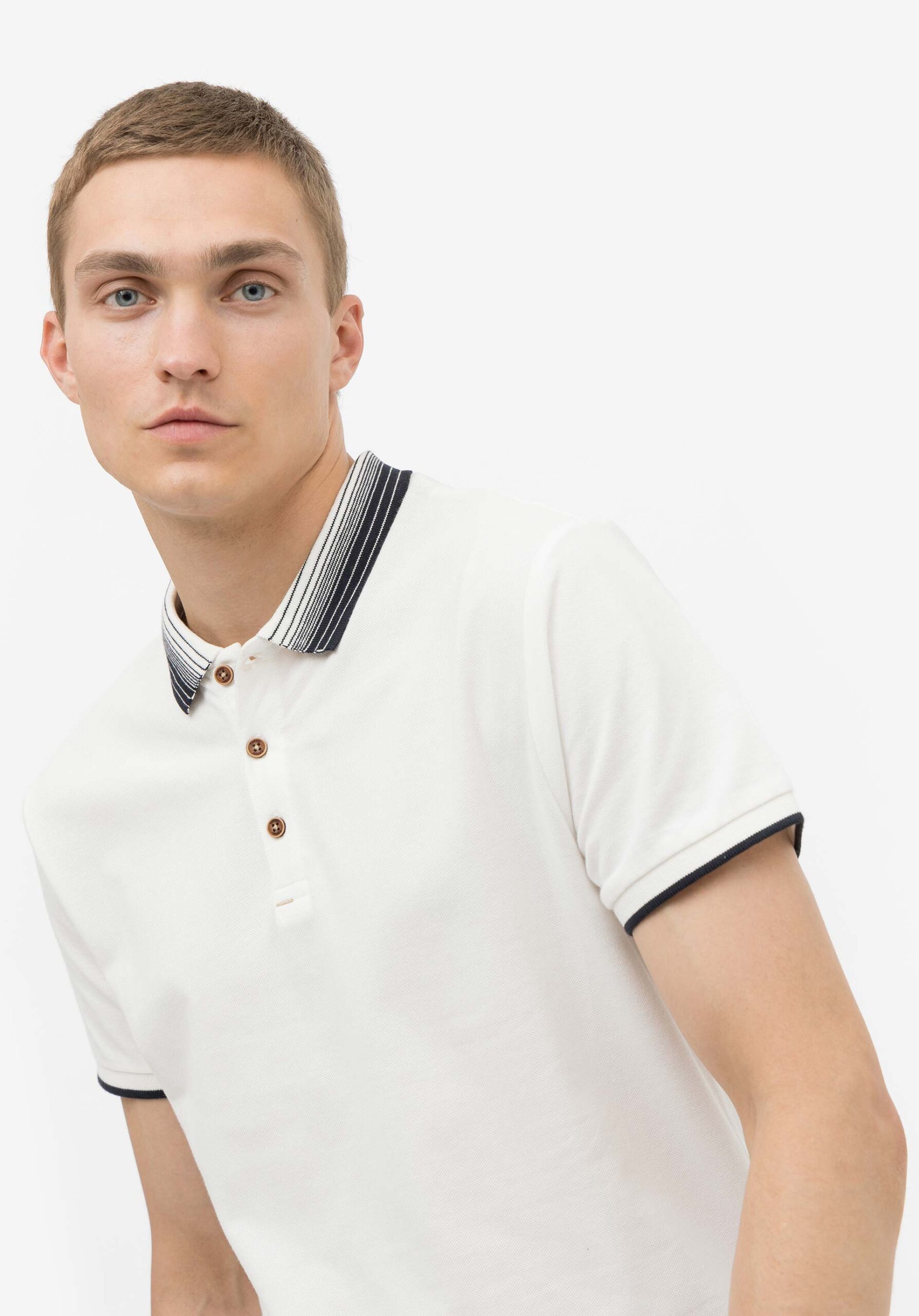 KONTAKT – Polo manches courtes avec découpe contrasté – Bleu Marine & Caramel