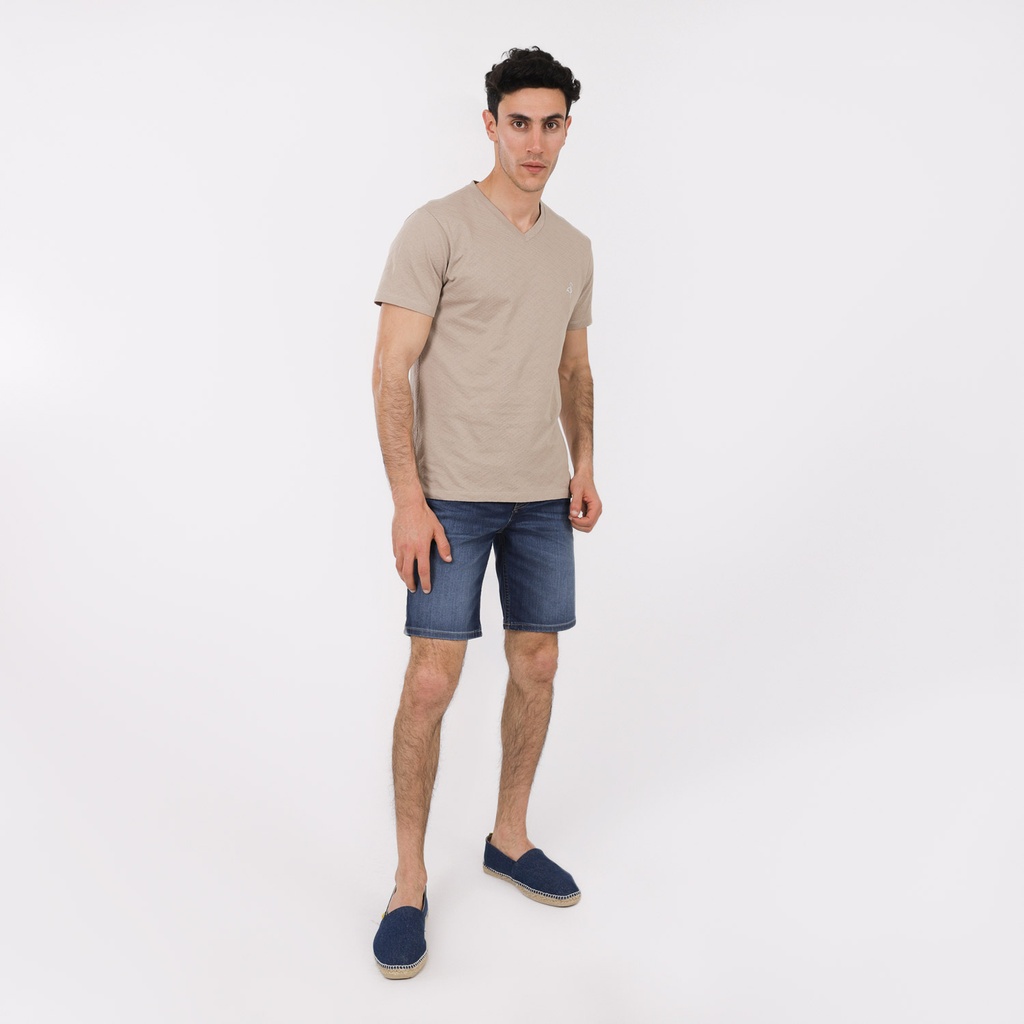 Kontakt – T-shirt col V pour homme manches courtes en jacquard – Beige