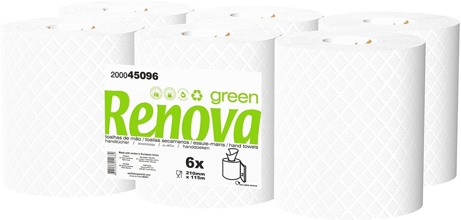 LOT DE 6 ROULEAUX PAPIER ESSUIE MAINS 210x115MM RENOVA