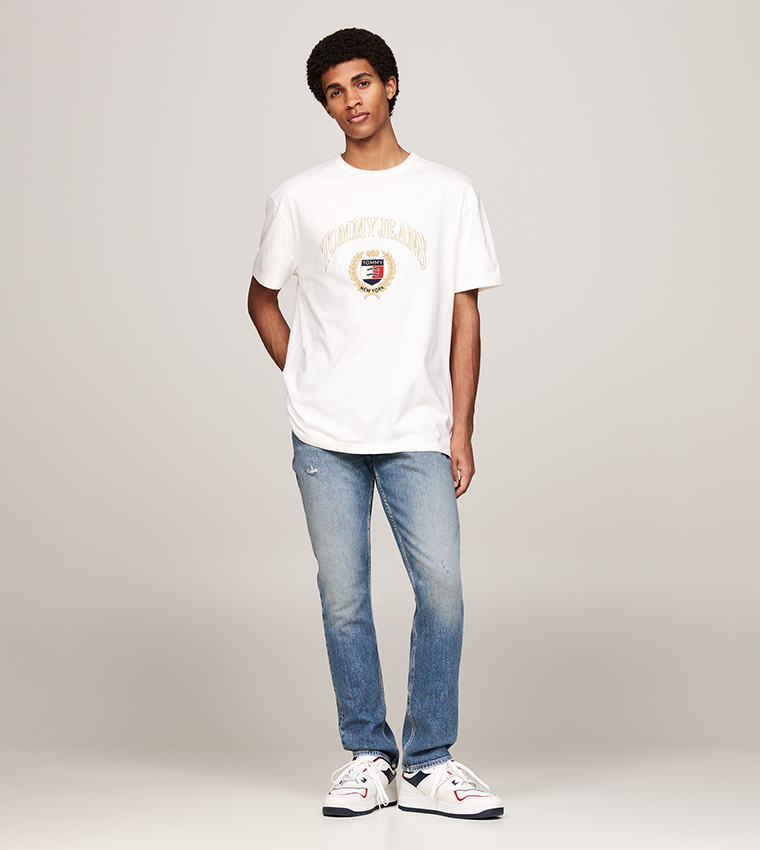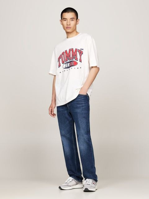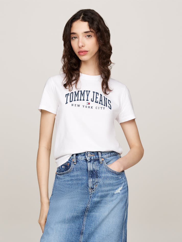 Tommy Jeans – T-shirt ras du cou avec logo universitaire – Blanc