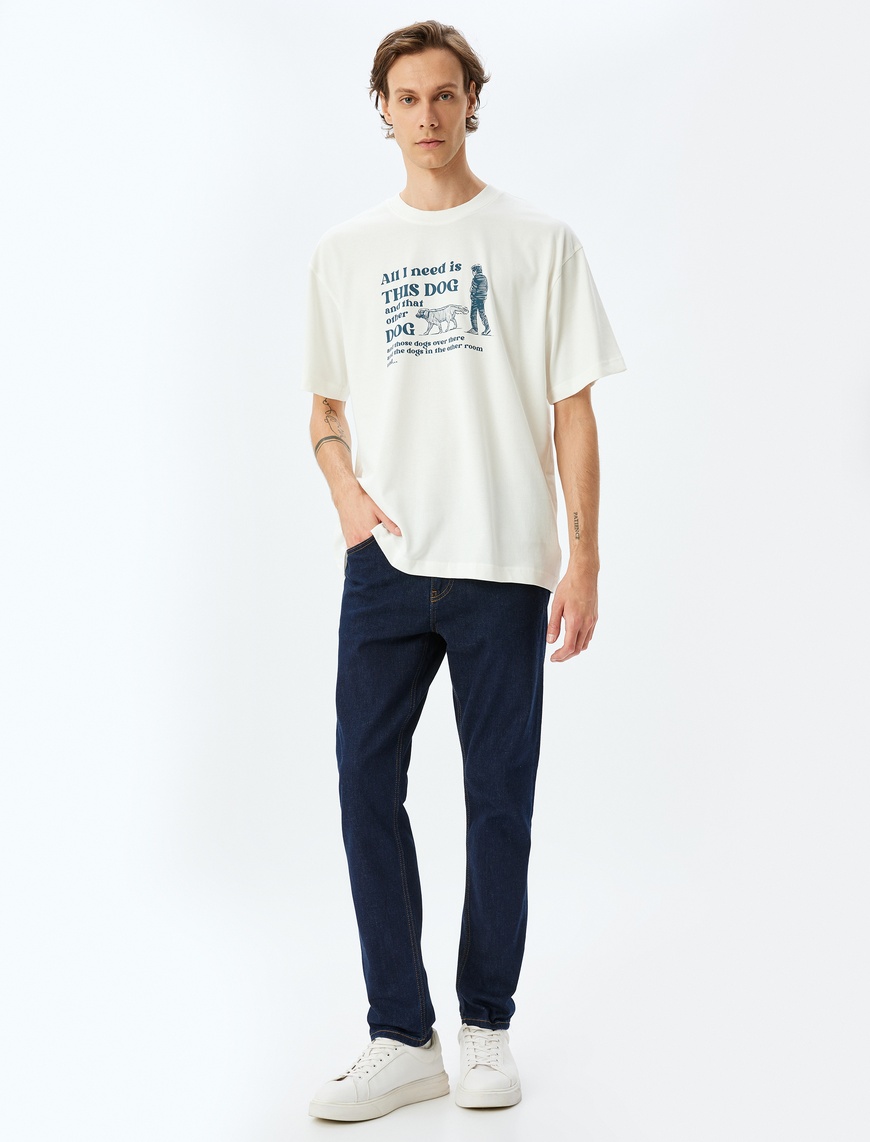 Koton Homme – T-shirt en coton à manches courtes et col ras du cou T-shirt imprimé oversize – Blanc
