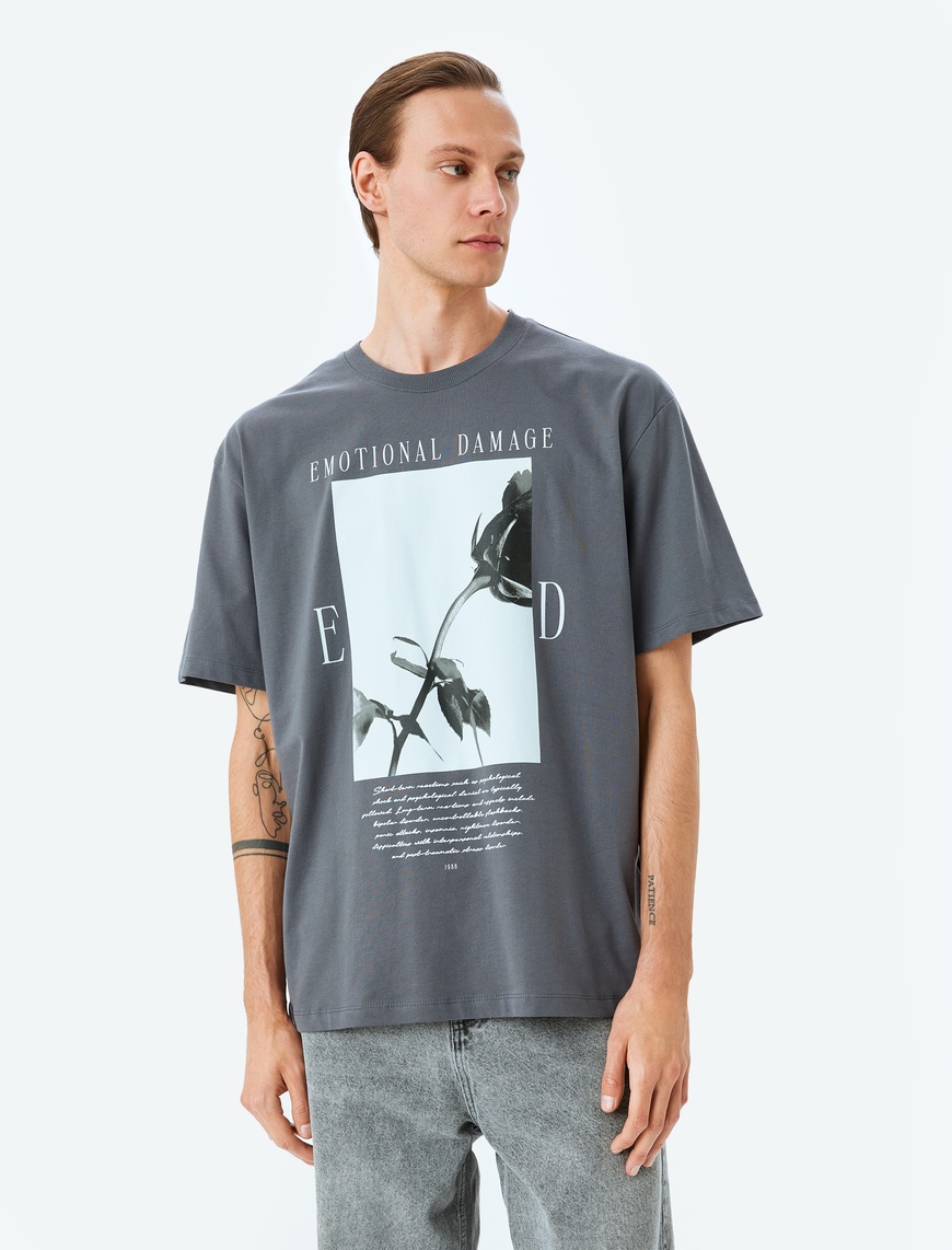 Koton Homme – T-shirt ample à col ras du cou et manches courtes en coton imprimé – Anthracite