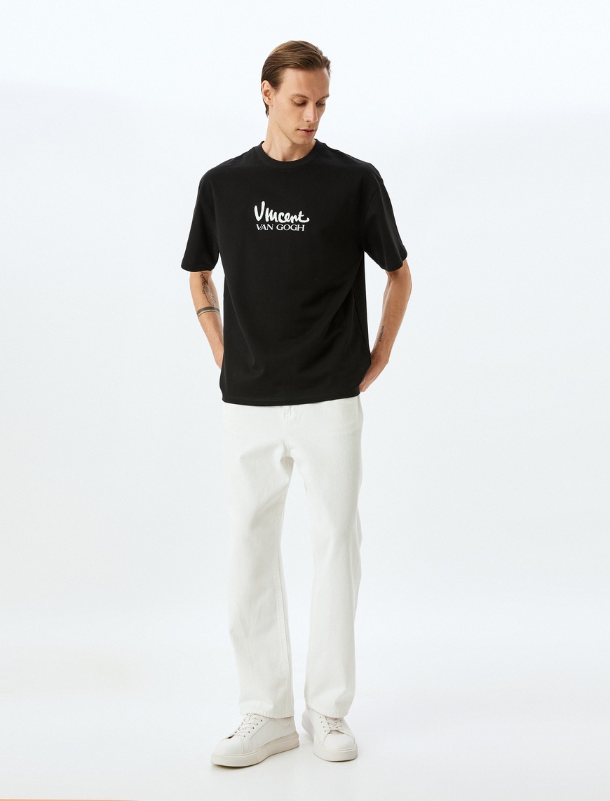Koton Homme – T-shirt oversize en coton à manches courtes et col ras du cou, imprimé Van Gogh sous licence – Noir
