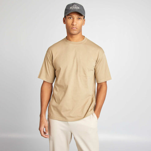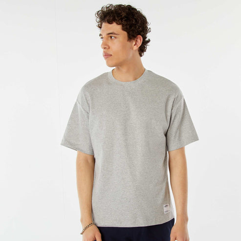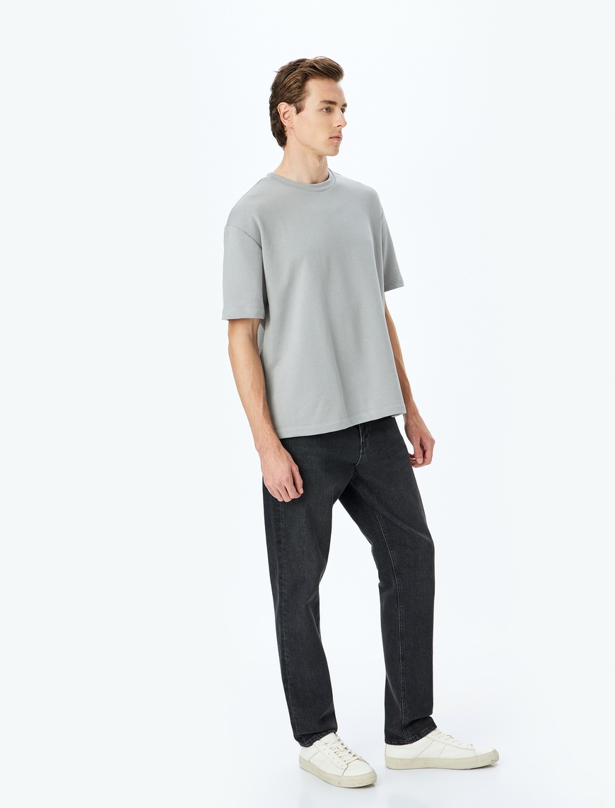 Koton Homme – T-shirt oversize à manches courtes et col ras du cou en tissu uni avec étiquette détaillée – Gris