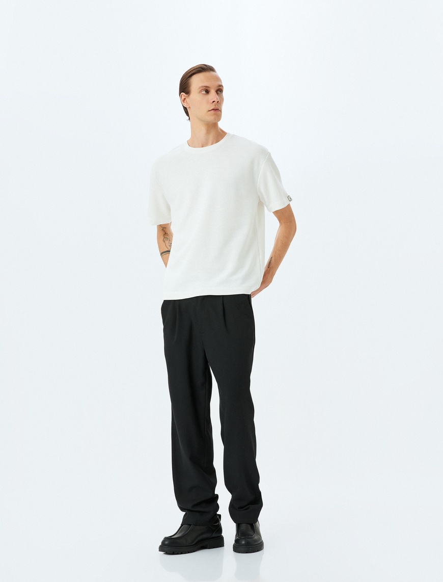Koton Homme – T-shirt oversize à manches courtes et col ras du cou en tissu uni avec étiquette détaillée – Blanc