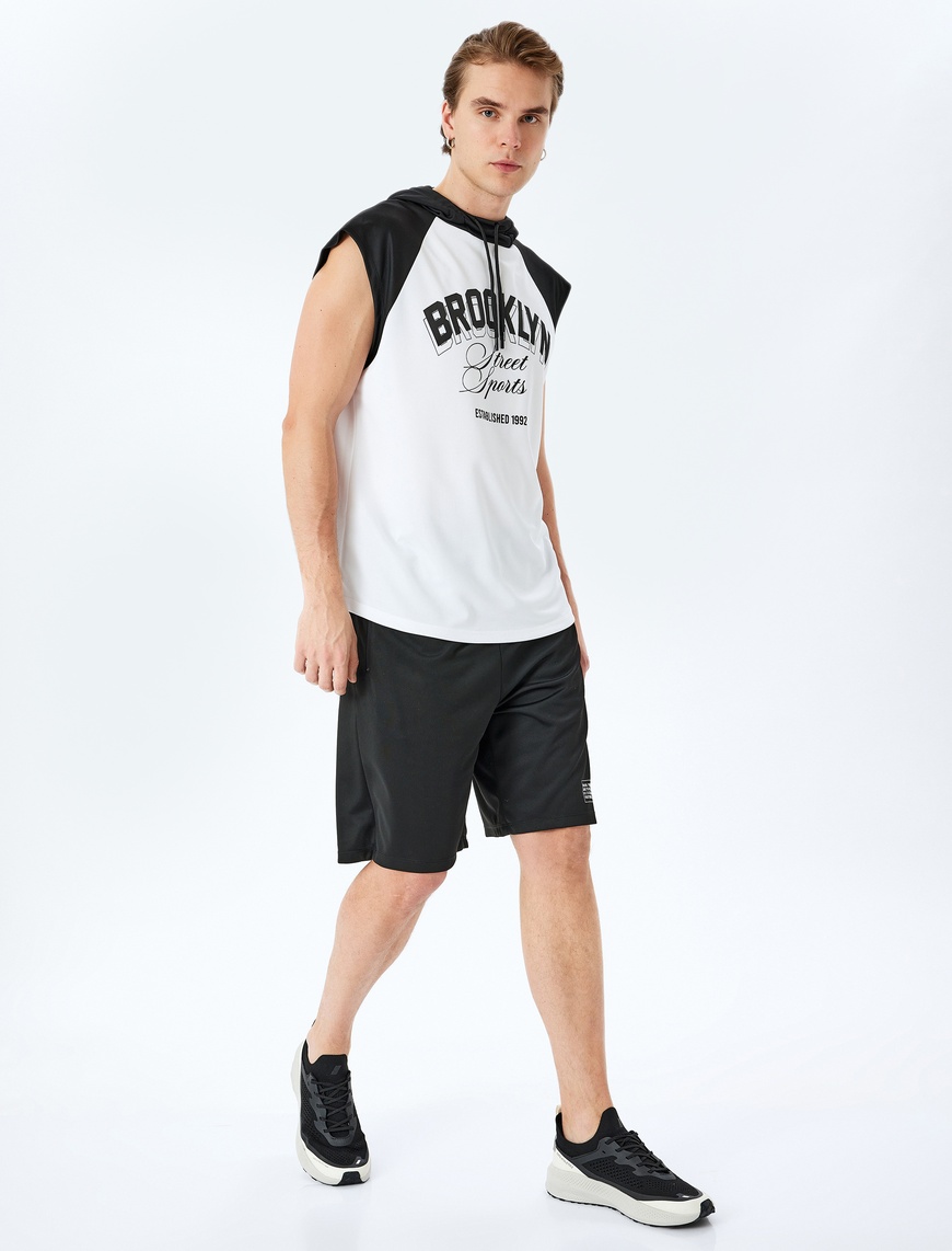 Koton Homme – Débardeur de sport sans manches à capuche et imprimé slogan – Blanc