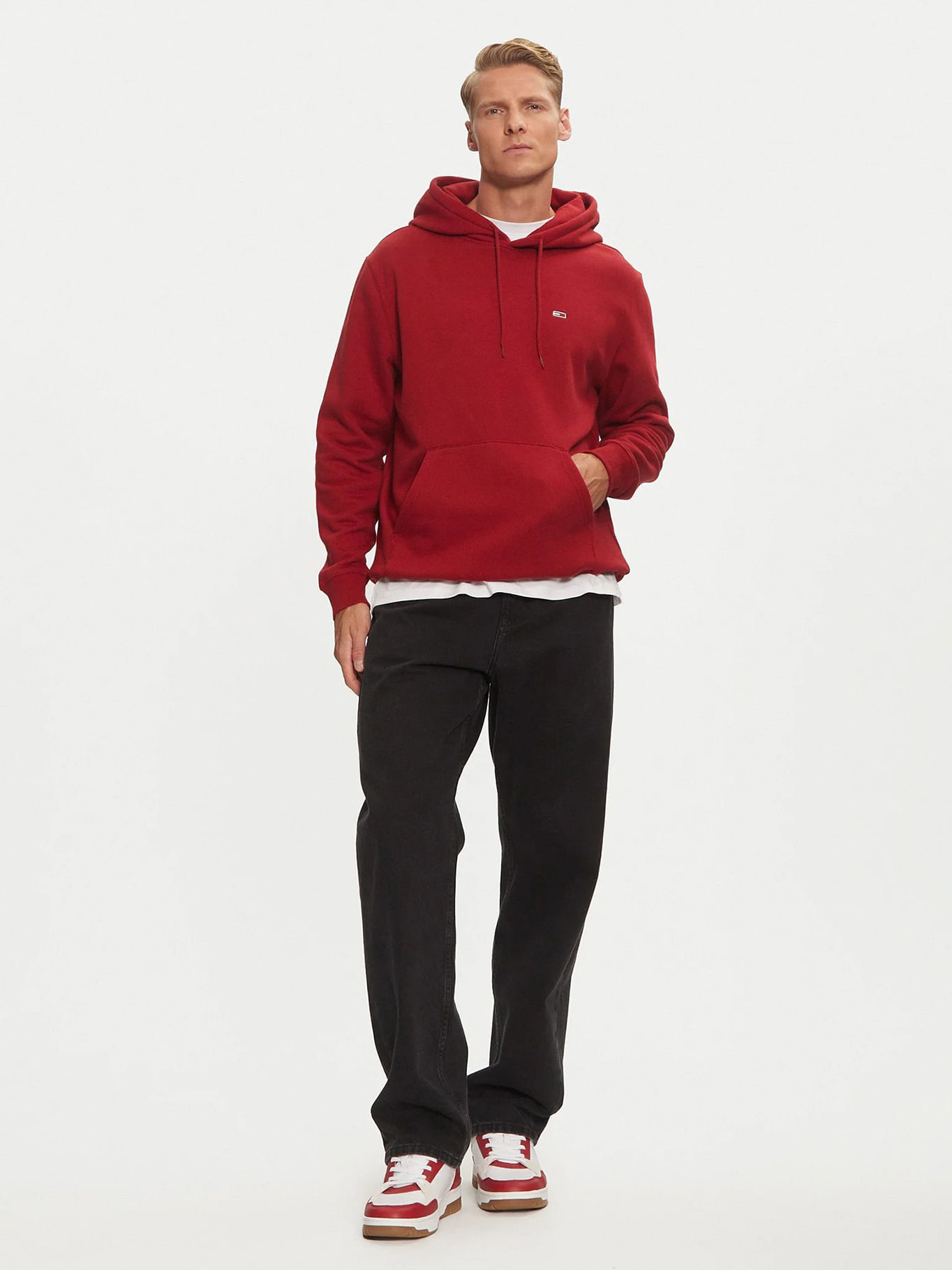 Tommy Jeans – Sweat à capuche uni avec logo – Rouge